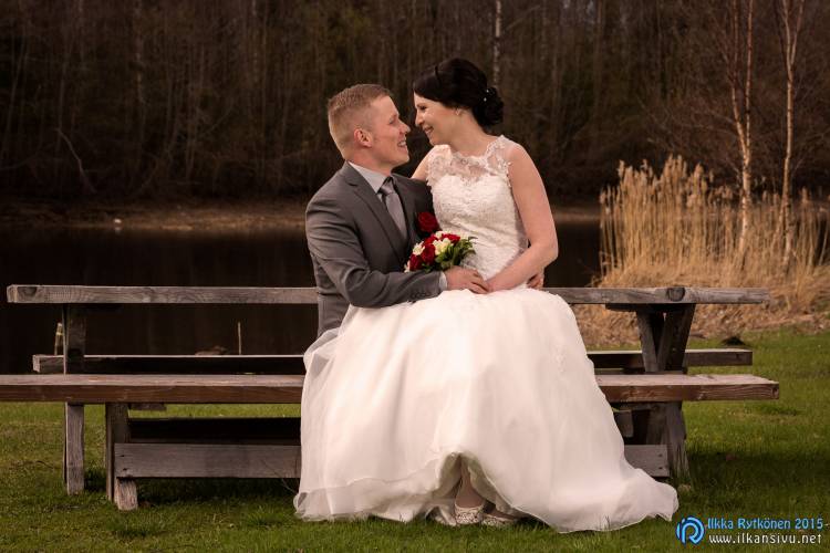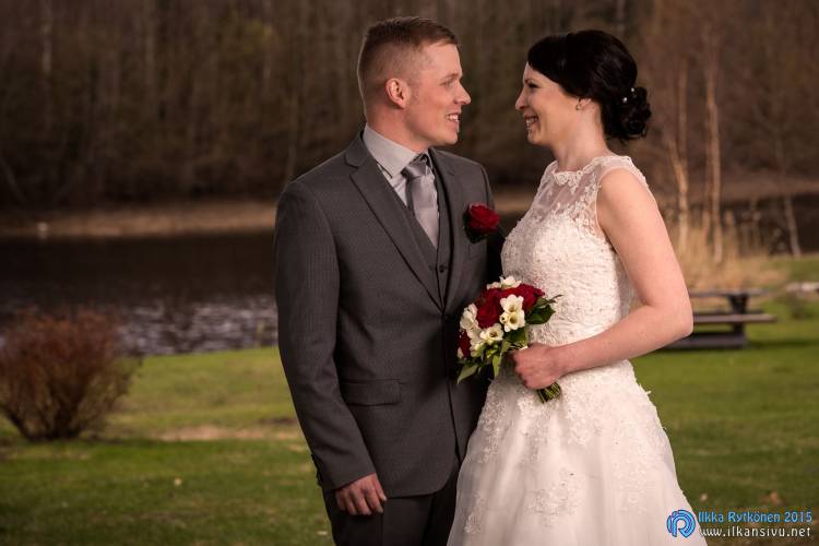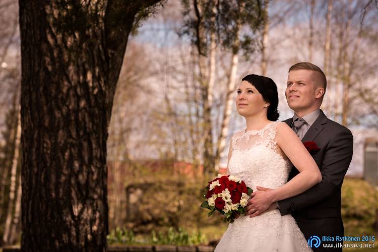 Maritta and Lassi had their wedding day in the spring. Grass was already a bit green but there weren’t leaves on the trees.