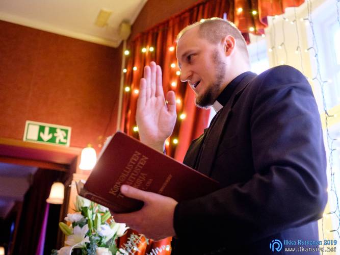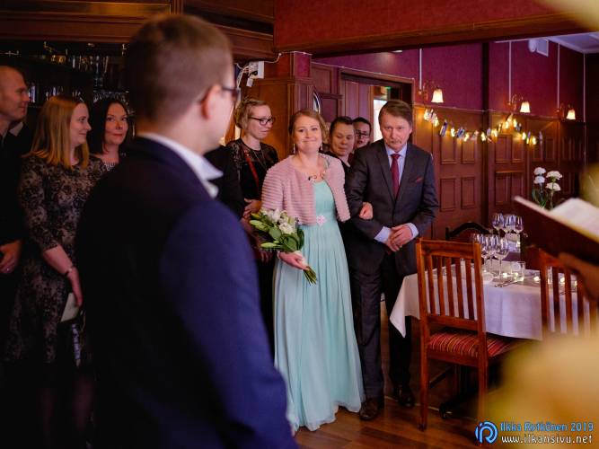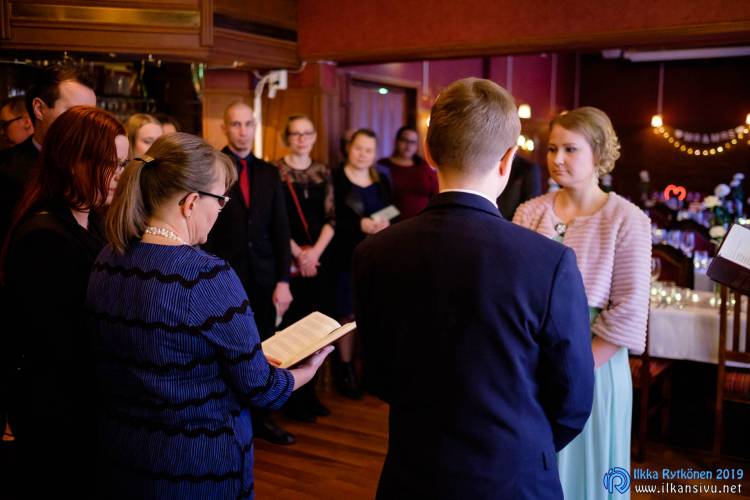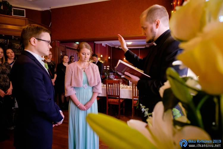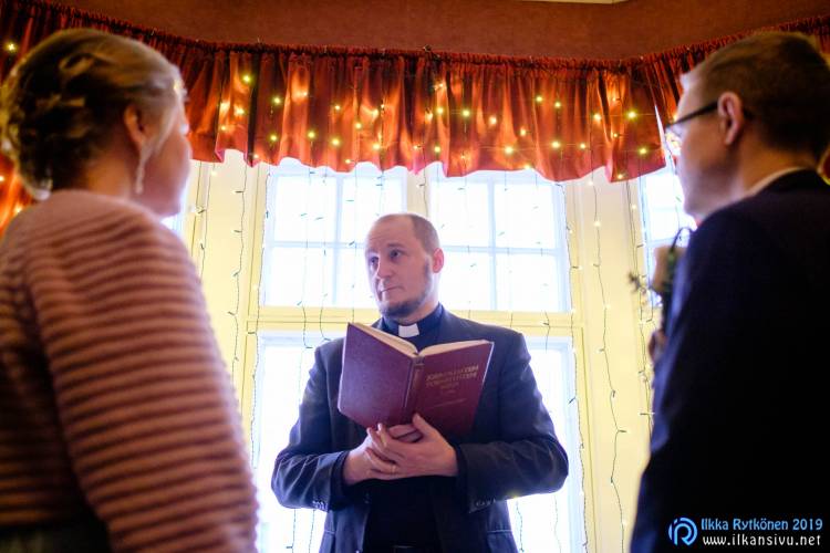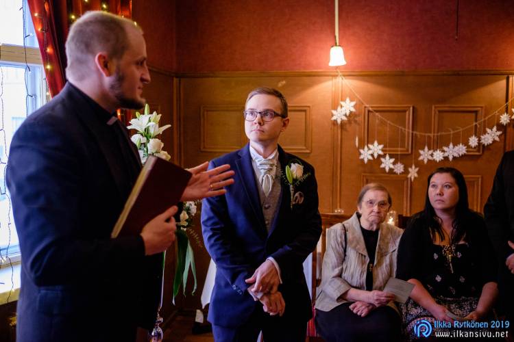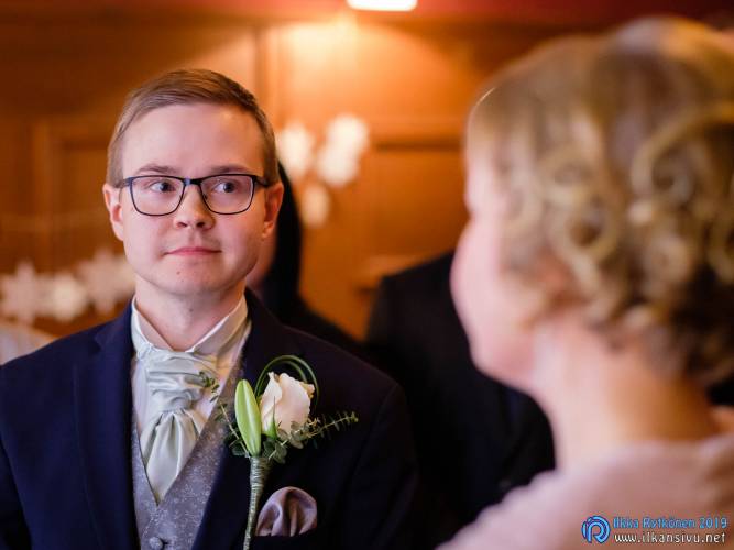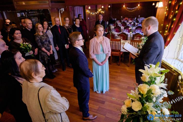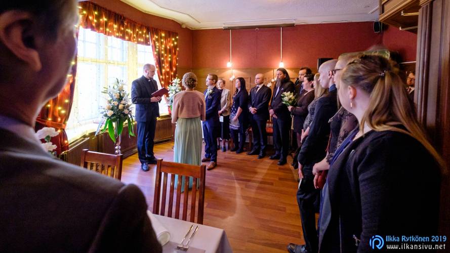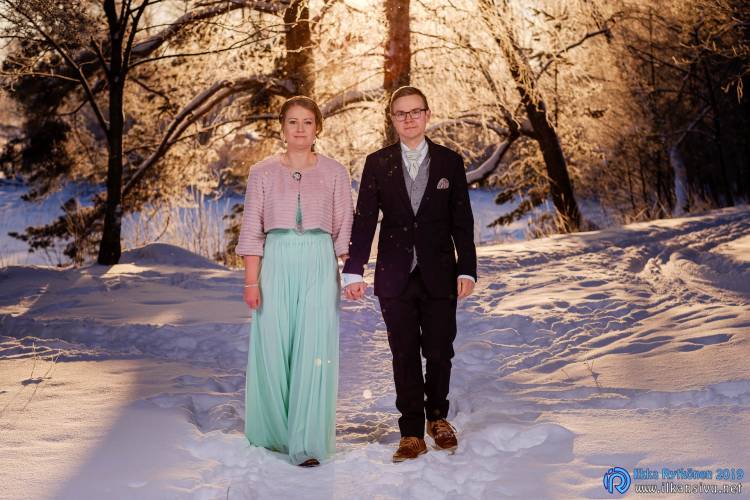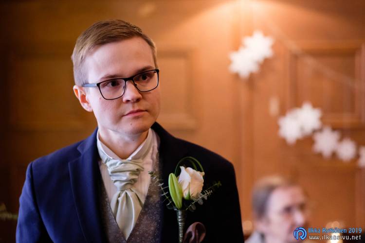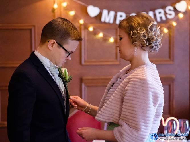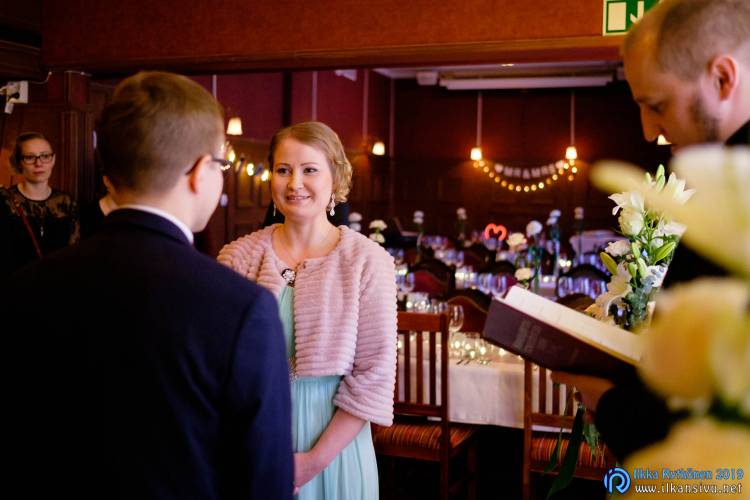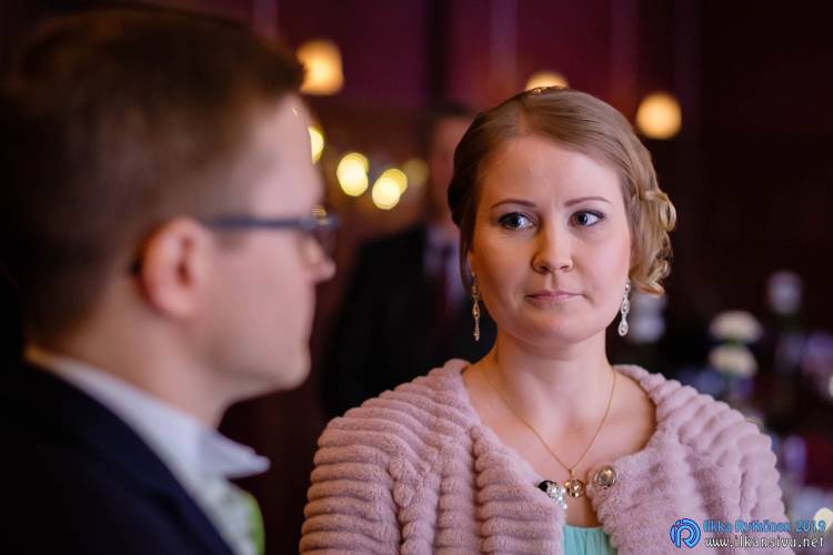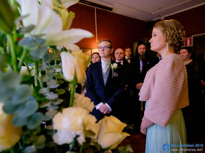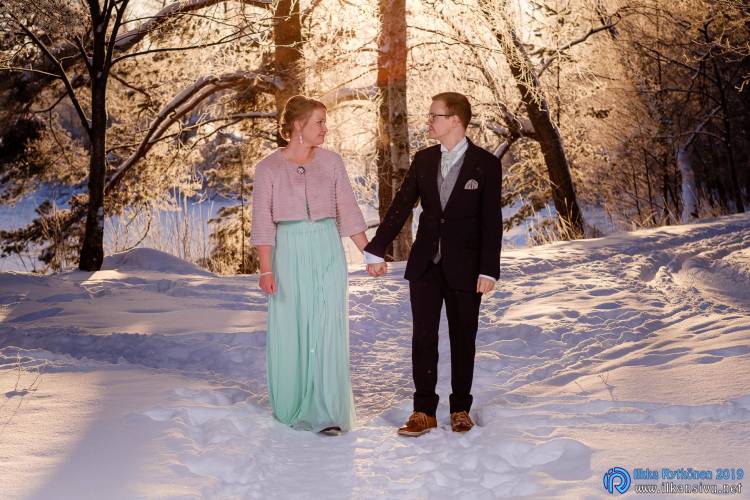 January might be challenging for wedding photo shoot on location. Temperature was -17 °C so I had to negotiate a bit with Salla and Vesa to get them outside. Light was incredibly beautiful, and I wanted to get at least couple of the shots outside. It was good decision, and we got the shots that was expected. There was not needed to take any more shots after this 20 minute session. Wedding ceremony was held in Restaurant Kummisetä.